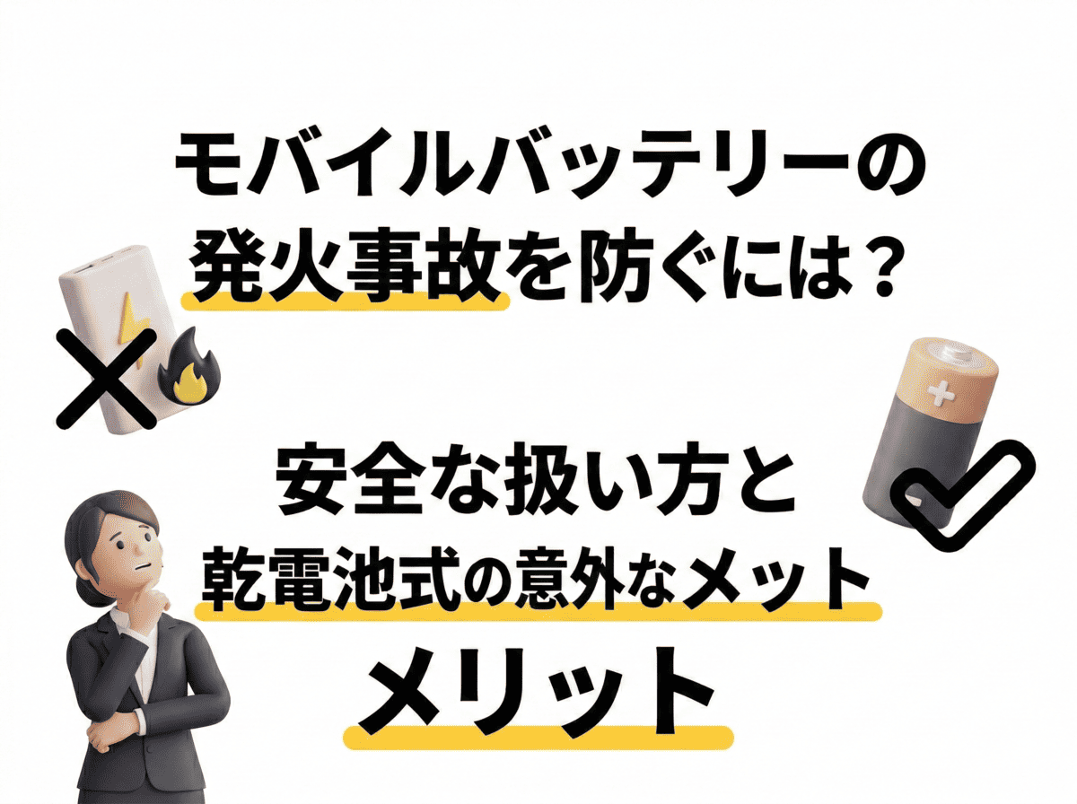 この記事では、モバイルバッテリーが発火する本当の原因と、事故を防ぐために今すぐできる対策を詳しく解説します。最後まで読んでいただければ、安全な製品の選び方だけでなく、もしもの時に頼りになる「新しい選択肢」についても理解が深まるはずです。